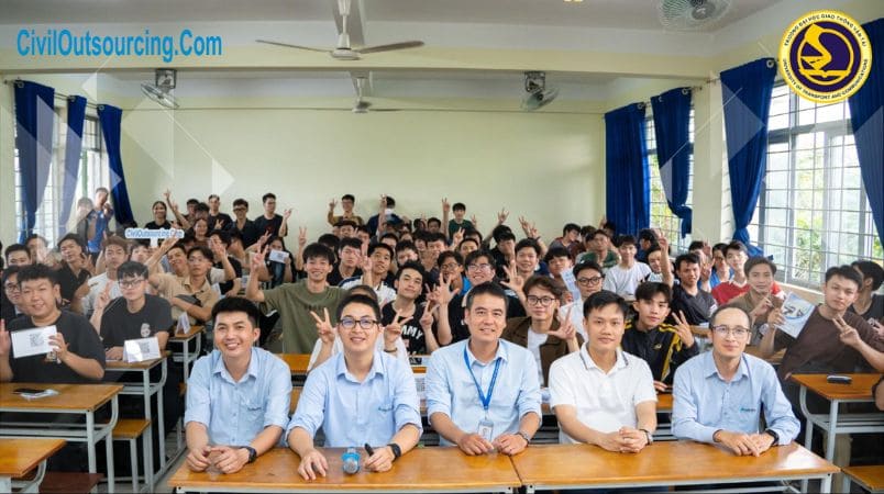 Recently, Civil Outsourcing had the opportunity to visit and collaborate with the University of Transport and Communications (UTC2) – one of Vietnam’s premier institutions in the technical field. This engagement is a key part of Civil Outsourcing’s long-term strategy to cultivate a steady and skilled engineering workforce, ensure rapid project delivery, and uphold high service standards for global clients.